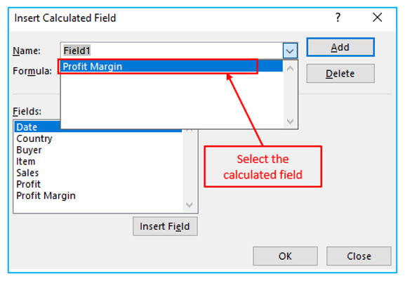Modify or delete a pivot table calculated field to the Pivot Table: